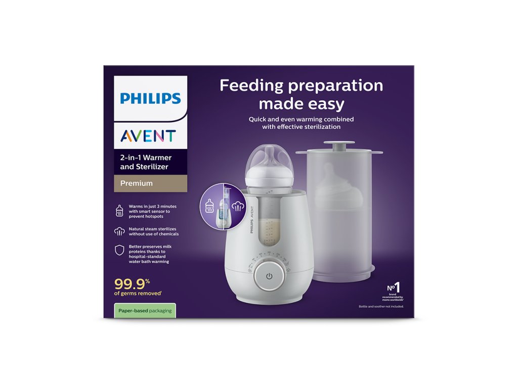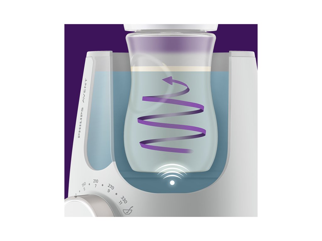 • Egyetlen gombnyomással 3 perc alatt felmelegíti a cumisüveget*