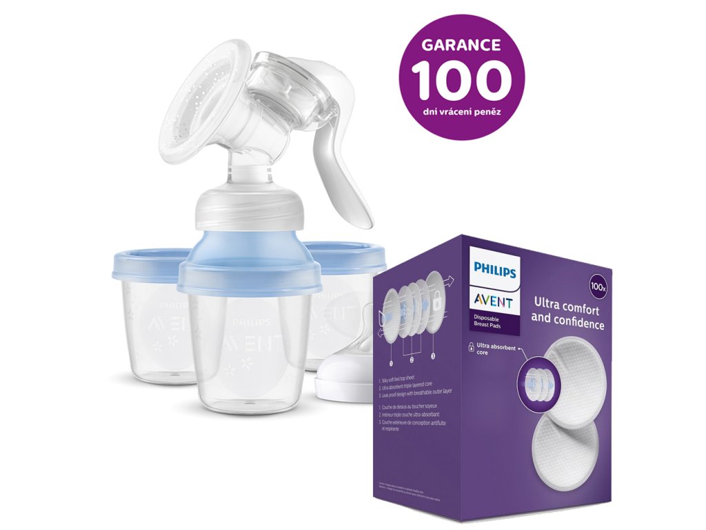 Philips AVENT Kézi mellszívó VIA rendszerrel + Eldobható melltartóbetét 100db