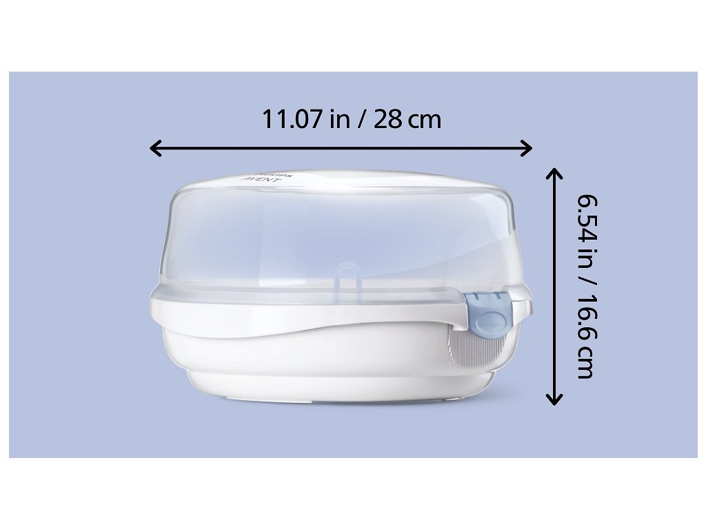 A mikrohullámú sütőbe való gőzsterilizálót a piacon lévő legtöbb mikrohullámú sütőhöz tervezték, így a cumisüvegek és egyéb termékek steril állapotban maradnak, bárhol is legyen.