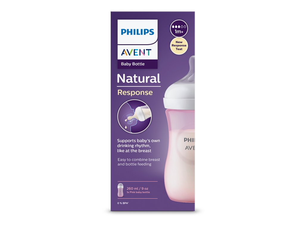Philips AVENT Natural Response cumisüveg 260 ml, 1 hónapos kortól, rózsaszín