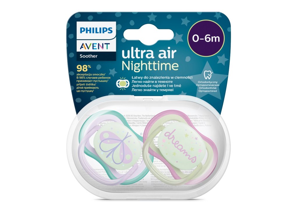 Philips AVENT Ultra Air éjszakai cumi 0-6 hó lány 2 db