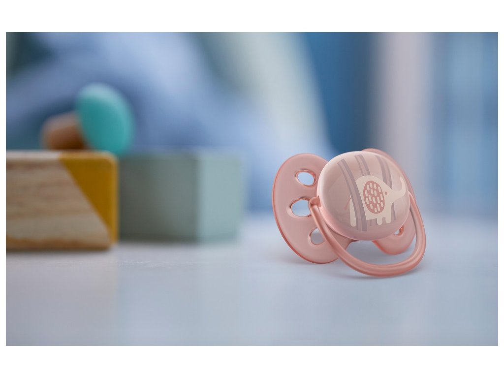 Nyújtson ápolást az érzékeny bőrnek a Philips Avent Ultrasoft cumival. A nagyon puha* és rugalmas felső rész követi a baba arcának vonalait, kevesebb nyomot és irritációt hagyva a bőrön.