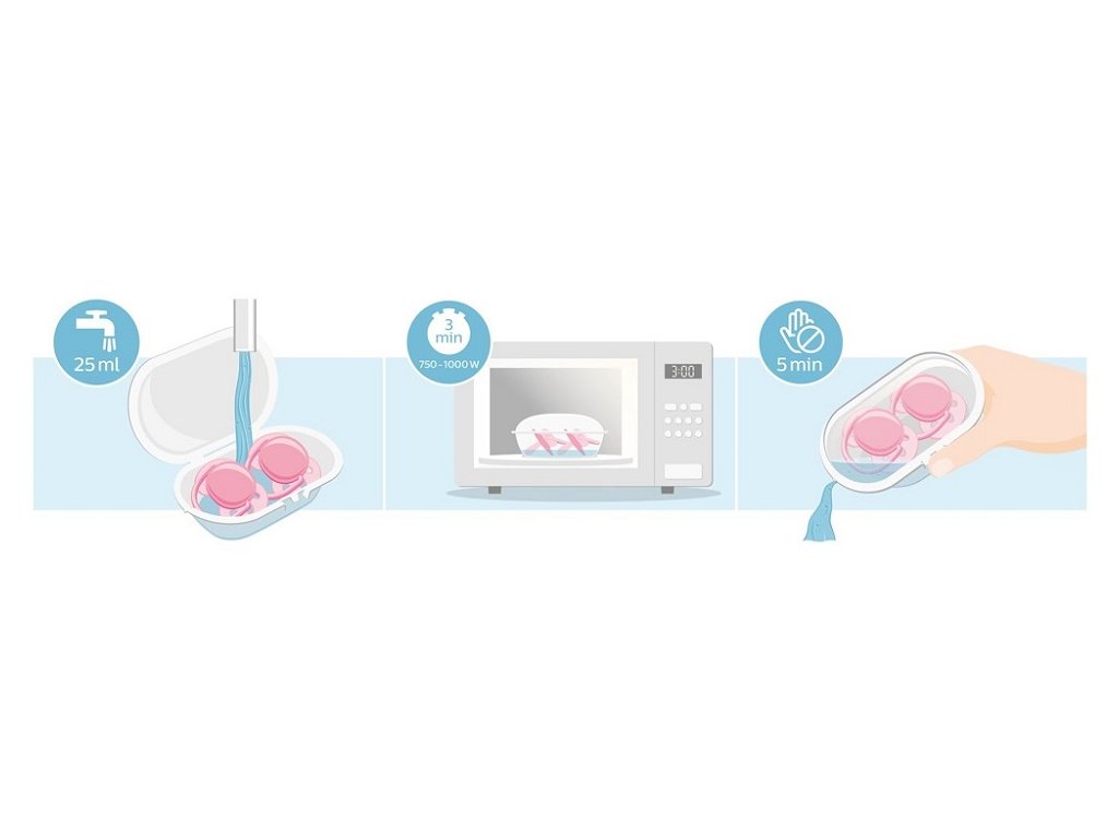 Az Ultrasoft és Ultra air cumijainkhoz mellékelt utazótok egyben sterilizálóként is szolgál. Csak öntsön bele vizet, és tegye be a mikrohullámú sütőbe. Így biztos lehet benne, hogy a cumi tiszta és használatra kész.