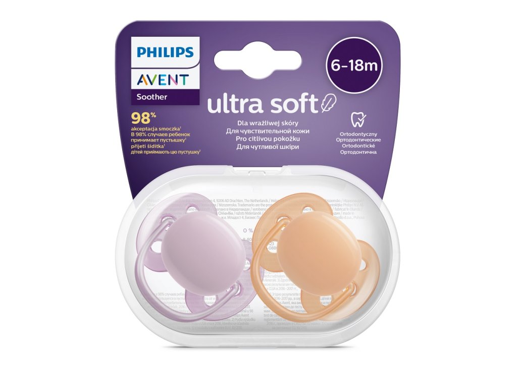 Nyújtson ápolást az érzékeny bőrnek a Philips Avent Ultrasoft cumival. A nagyon puha* és rugalmas felső rész követi a baba arcának vonalait, kevesebb nyomot és irritációt hagyva a bőrön.