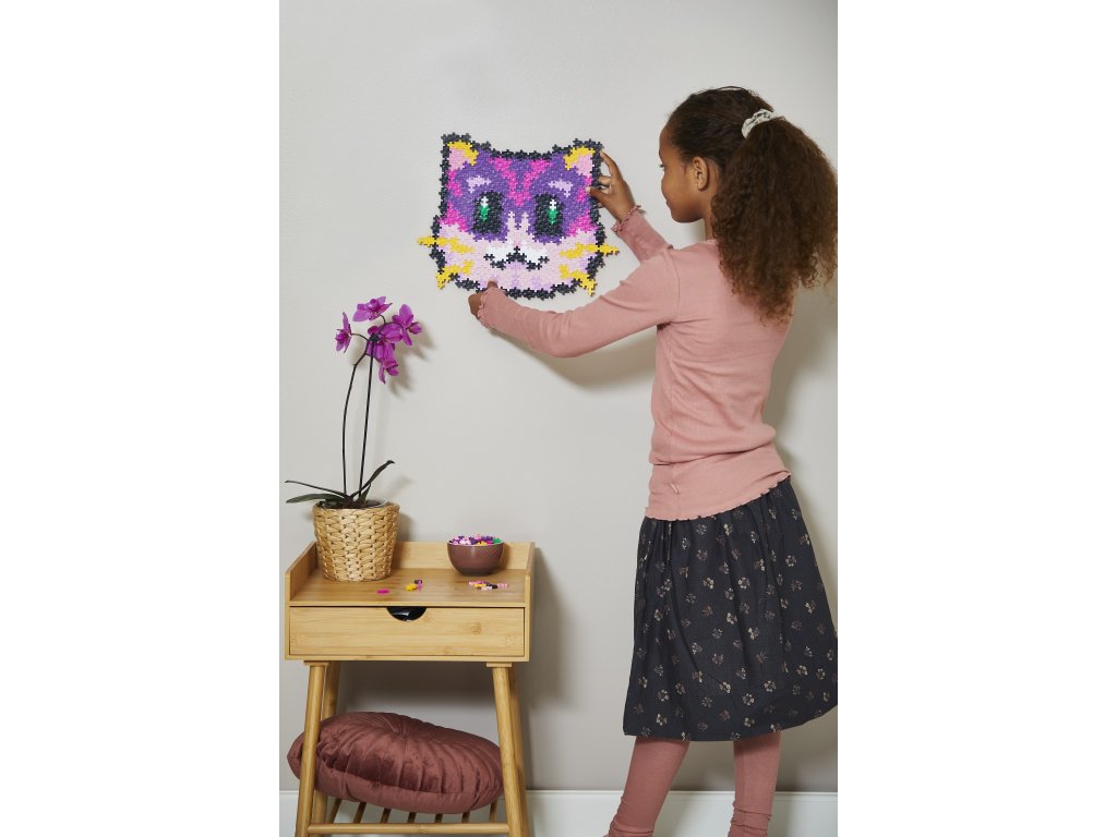 Plus-Plus Kreatív készlet – Építs számok szerint A Macska egy nagyszerű kreatív építőkészlet, amely lehetővé teszi egy aranyos macska mozaik létrehozását 500 darab segítségével. A kilenc szín mindegyikének megvan a saját száma a sablonon, amely szerint egyszerűen hozzáadhatja az egyes darabokat. Ez a szórakoztató és kreatív építési mód támogatja a kreativitást, a szem-kéz koordinációt, és segít a motoros készségek fejlesztésében is.