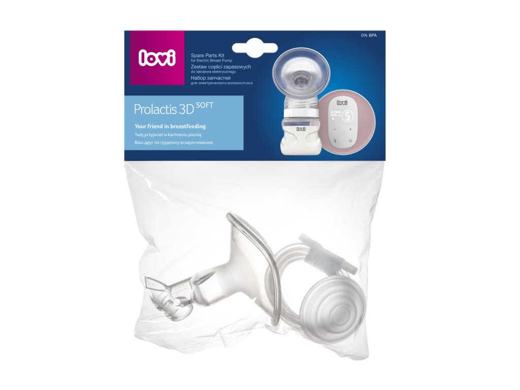 Pótalkatrész-készlet Prolactis 3D Soft elektromos mellszívóhoz. A készlet tartalma: szilikon 3D tölcsér (masszázspárna) visszacsapó szeleppel, szilikon membrán, tömlő, tömlőcsatlakozó 2 db.