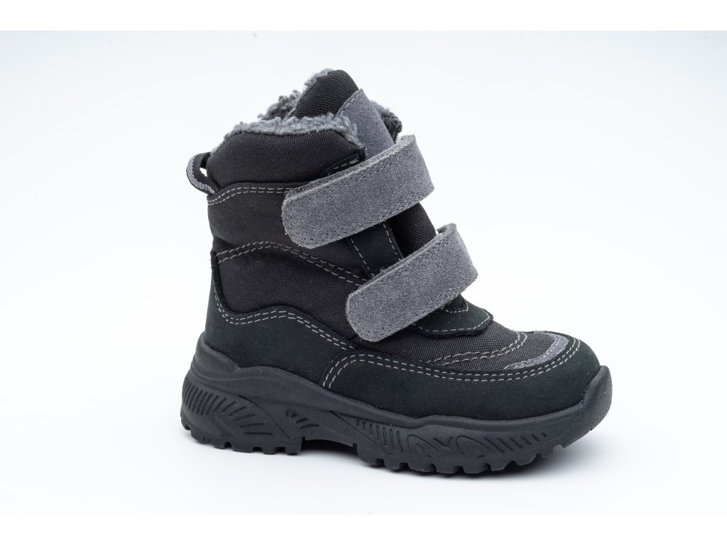 Újdonság! Fiú téli szabadidős cipő fekete színben. Sima és csiszolt bőrből készültek textil kombinációjával. A cipők magasabb szabásúak.