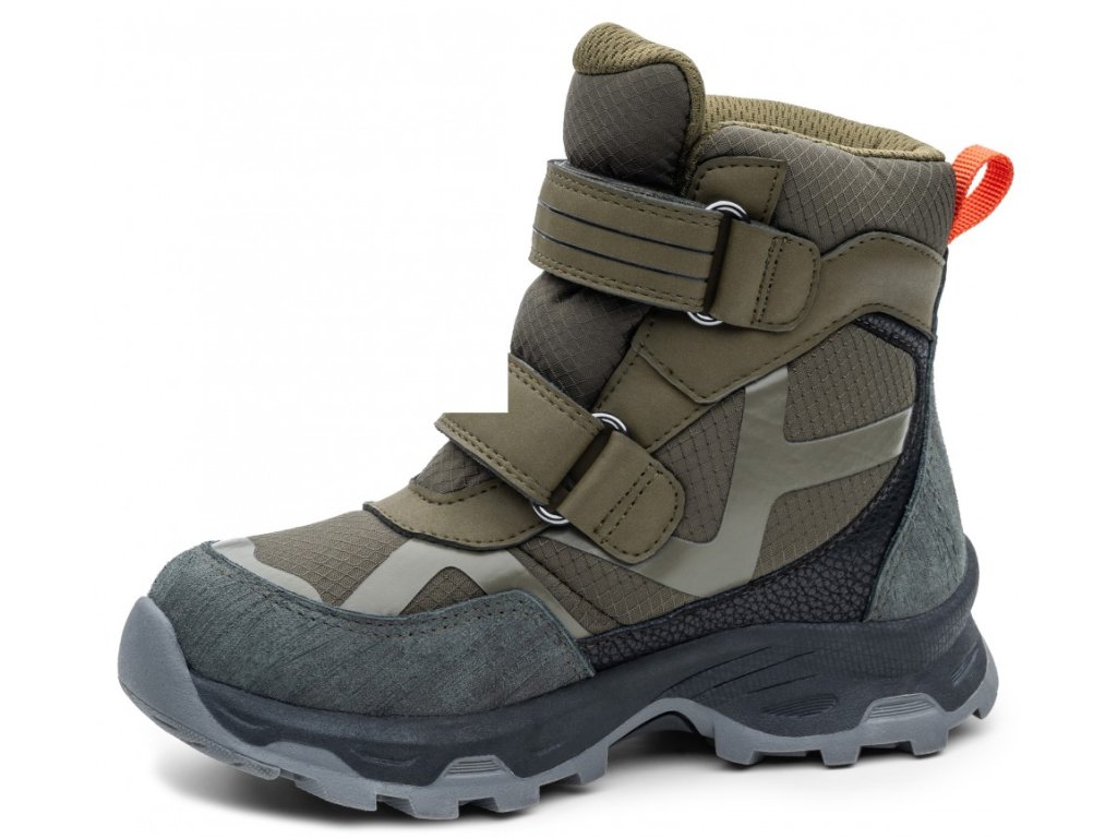 Újdonság! A fiúk téli szabadidős cipői sima bőrből készültek, kiváló minőségű textil anyaggal kombinálva. A cipő khaki színű.