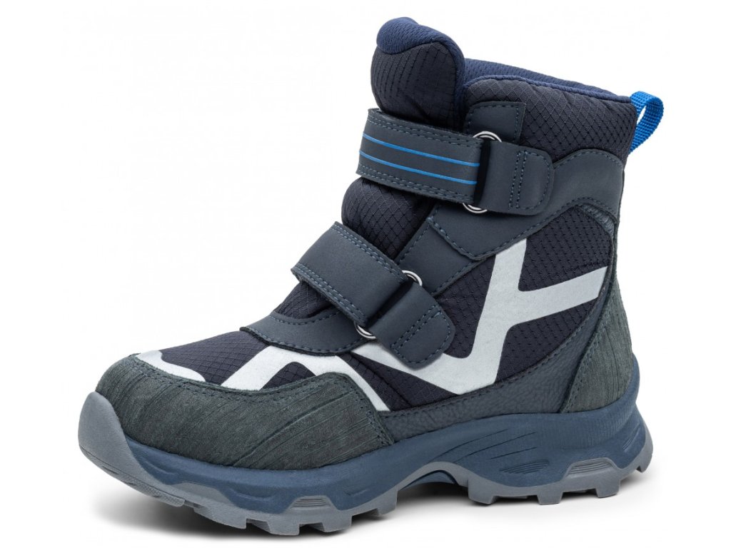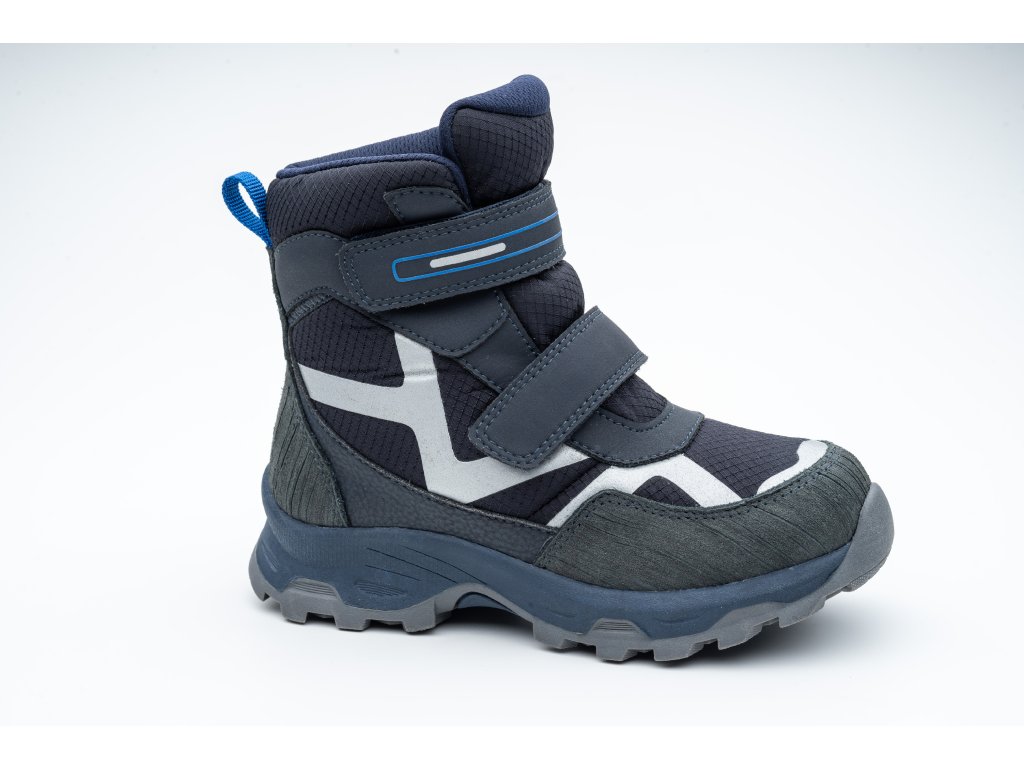 Újdonság! A fiúk téli szabadidős cipői sima bőrből készültek, kiváló minőségű textil anyaggal kombinálva. A cipők kék színűek.