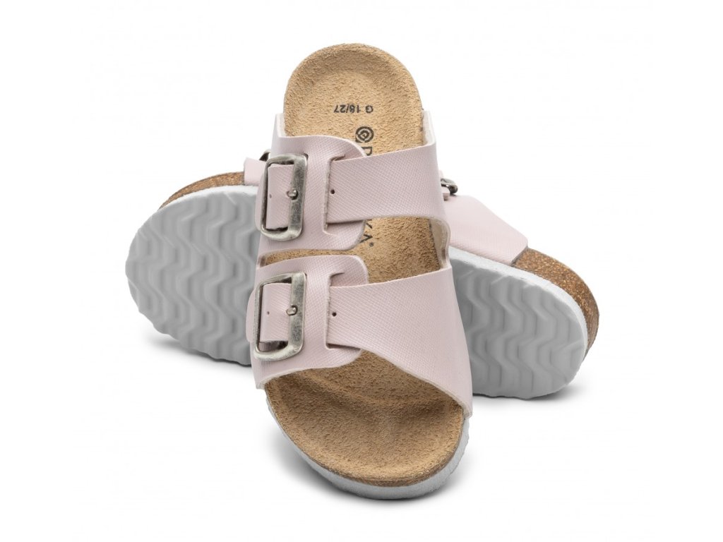 A papucsok alapját a parafa-latex formázás adja, anatómiailag formázott, természetes bőr talpbetéttel világosbézs színben. Ez a talpbetét olyan speciális ortopédiai elemeket tartalmaz, mint a lábujj- és hüvelykujjtartó, a hosszanti és harántboltozat alátámasztása, valamint a saroktartó. Ezek az alkatrészek együttesen biztosítják az optimális támogatást, csökkentik a járás közbeni ütéseket és hozzájárulnak a láb helyes pozíciójához.