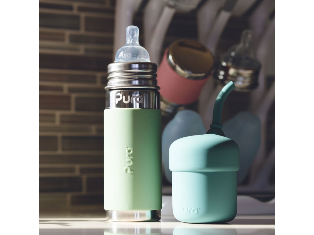 Végre egy biztonságos palack, amely 100%-ban műanyag alkatrészek nélkül készült. A Pura palackokkal biztos lehet benne, hogy nem szabadulnak fel káros anyagok és toxinok a benne lévő italba, sem ízek és szagok, mint a műanyag palackok vagy a műanyag kupakú palackok esetében. Semmi sem fontosabb, mint az Ön és gyermekei egészsége.A minőségi vákuumos hőszigetelés akár 6 órán keresztül melegen, és akár 24 órán keresztül hidegen tartja a folyadékot (jéggel).A Pura palackok ráadásul alkalmazkodnak és „együtt nőnek” gyermekével. Azáltal, hogy egyszerűen kicseréli a kupakokat, a palack csecsemőpalackból szívókás, szalmaszálas vagy sportkupakos palackká, vagy akár étel- és frissítőtartó pohárrá alakul. Így egy palackot sok évig használhat. One Life… One Bottle™.A legbiztonságosabb, legsokoldalúbb, könnyű és törésálló öko palack, amelyet több mint 35 díjjal tüntettek ki. Az első palack a piacon, amely 100%-ban műanyagmentes, és az egyetlen palack, amely Made Safe® tanúsítványt kapott. A vákuumos hőszigetelés akár 6 órán keresztül melegen, és akár 24 órán keresztül hidegen tartja a folyadékot (jéggel). Baby Grows… Bottle Evolves™ – a szabadalmaztatott rendszer lehetővé teszi bármely Pura palack használatát bármely Pura kupakkal. Így egyszerűen átalakíthatja a csecsemőpalackot szívókás, szalmaszálas vagy sportkupakos palackká, vagy a tömítőkorong segítségével étel- és apró frissítőtartó pohárrá. Egy palackot évekig használhat, miközben pénzt és a környezetet is kíméli. A palack és a foglalat első osztályú, 304-es (18\/8) rozsdamentes acélból, a többi rész pedig a legmagasabb orvosi minőségű szilikonból készül. BPA-, PVC-, ftalát- és egyéb veszélyes anyagoktól és toxinoktól mentes, az EU irányelveinek megfelelően tesztelve. Közepes áramlású, orvosi minőségű szilikonból készült Pura Natural Vent Nipple antikólásos cumisüveg. A palack kompatibilis számos más márka cumijával. Belső mérőskála a kényelmes és pontos adagolás érdekében. A csomag része egy szilikon kupak, amely védi a cumit, valamint egy cserélhető színes szilikon palackvédő a jobb fogás és szigetelés érdekében. Nem alkalmas mosogatógépbe. A hőszigetelő tulajdonságok megőrzése érdekében javasoljuk, hogy a palackot kézzel mossa el. Ne sterilizálja. Élettartam garancia a rozsdamentes acél alkatrészekre. Nem vonatkozik a palack mechanikai sérülésére. Súly: 182g Méretek: 5,9 x 19,6cm A csomag tartalma: rozsdamentes acél vákuumszigetelt palack 260ml, rozsdamentes acél foglalat, Pura Natural Vent Nipple antikolikus cumi (közepes áramlás), szilikon hüvely és fedél
