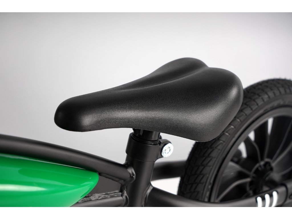 A kerékpár állítható, kényelmes nyereggel van felszerelve, amely követi a gyermek növekedését.