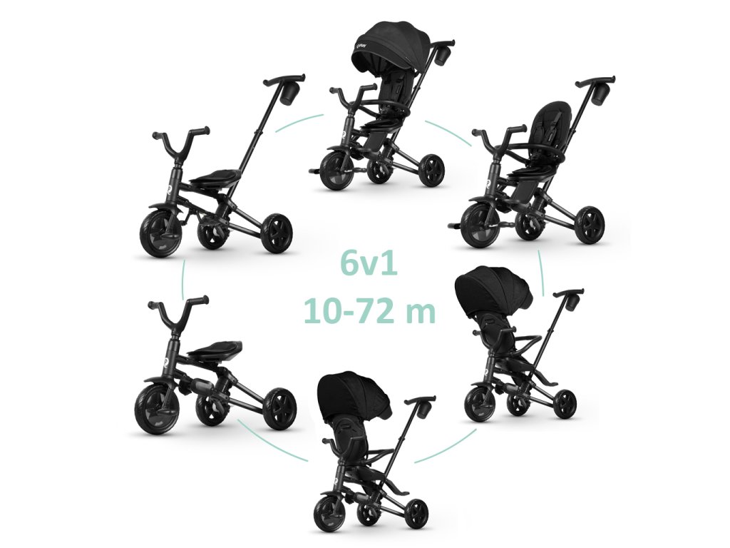 QPLAY Nova Niello Black tricikli, összecsukható, 10-72 hónapos korig