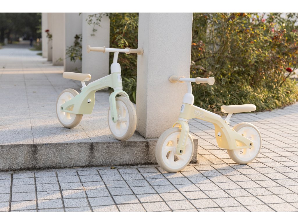 A magasságban állítható kormány lehetővé teszi a jármű gyermek magasságához való igazítását, míg a kormányzás korlátozása növeli a biztonságot. A karcsú forma csökkenti a légellenállást, ami nagyobb menetsebességet eredményez. A kerékpár beltéren és kültéren is használható, és alkalmas a hordozásra.
