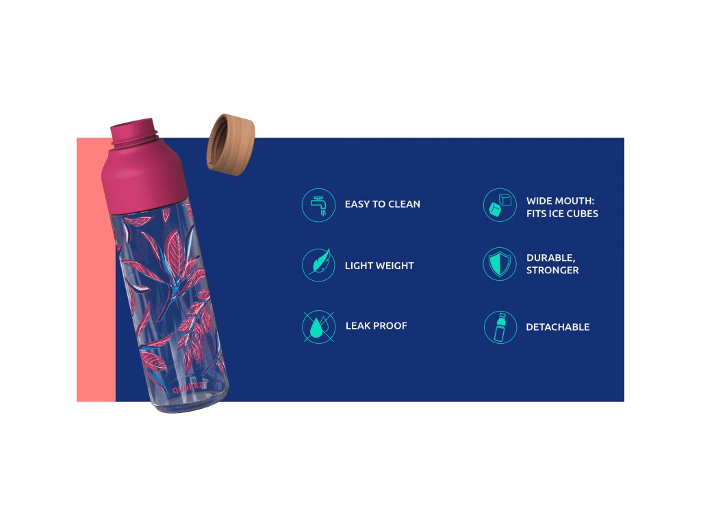 A Quokka Ice dupla nyílású palack lehetővé teszi jégkockák vagy gyümölcsdarabok behelyezését, ugyanakkor könnyen tisztítható. A 100%-ban tömítő, csavaros kupakok megvédik a palack tartalmát a kiömléstől.