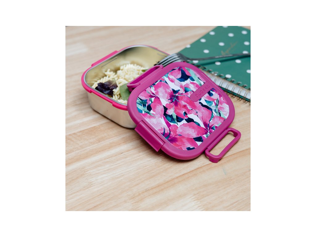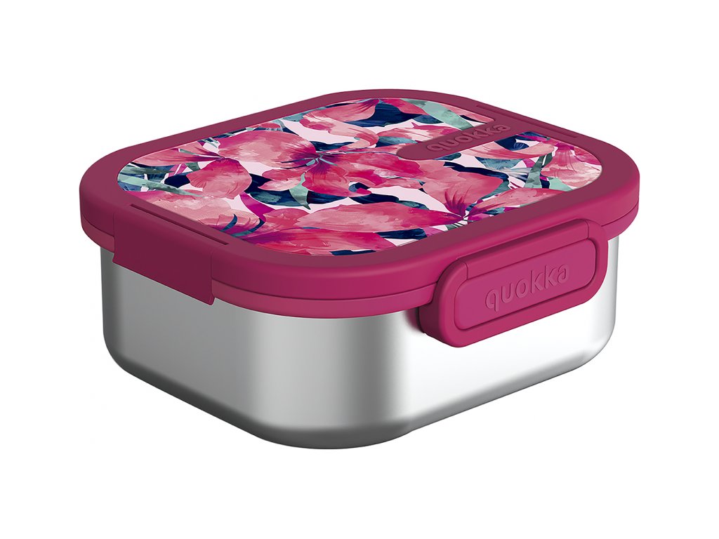 A Quokka Kai ételhordó doboz kiváló minőségű rozsdamentes acélból, műanyag fedővel ideális tízórai vagy ebéd biztonságos szállítására iskolába, munkába és kirándulásokra. A megbízható, 100%-ban záró fedél klipszes záródással védi a doboz tartalmát a kiömléstől vagy a kiszóródástól. A rozsdamentes acél anyag nem szívja magába a szagokat, így bármilyen ételhez alkalmas.