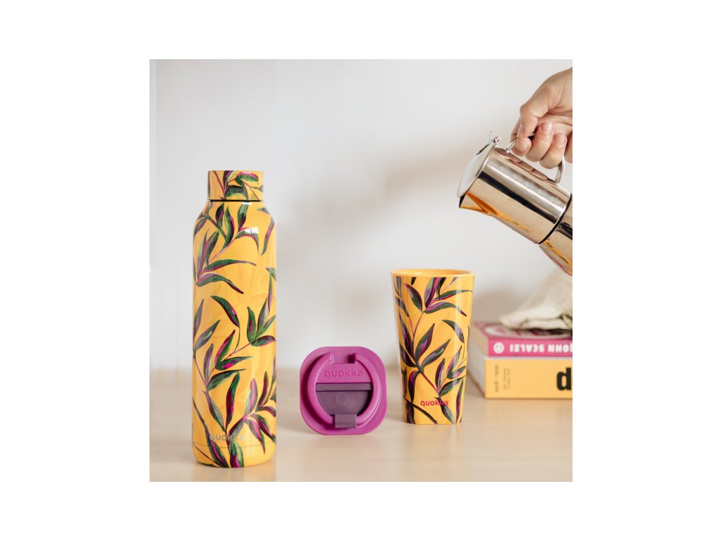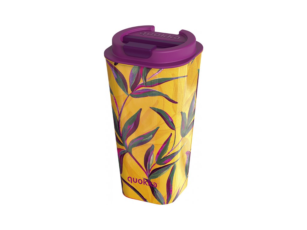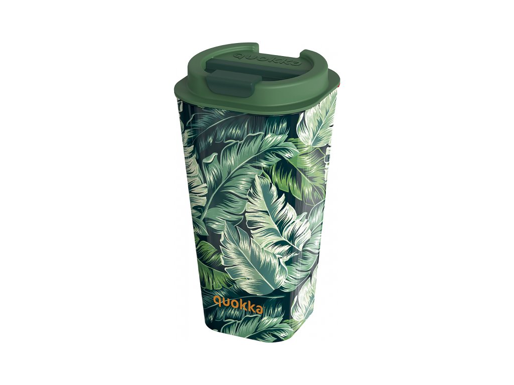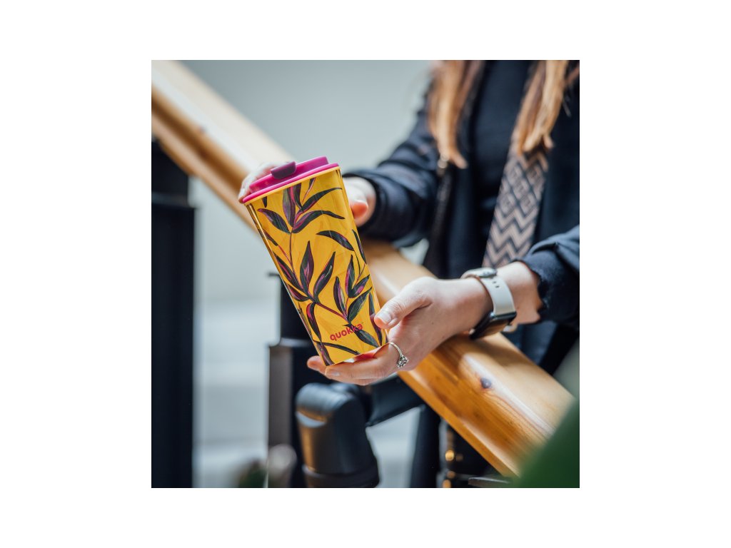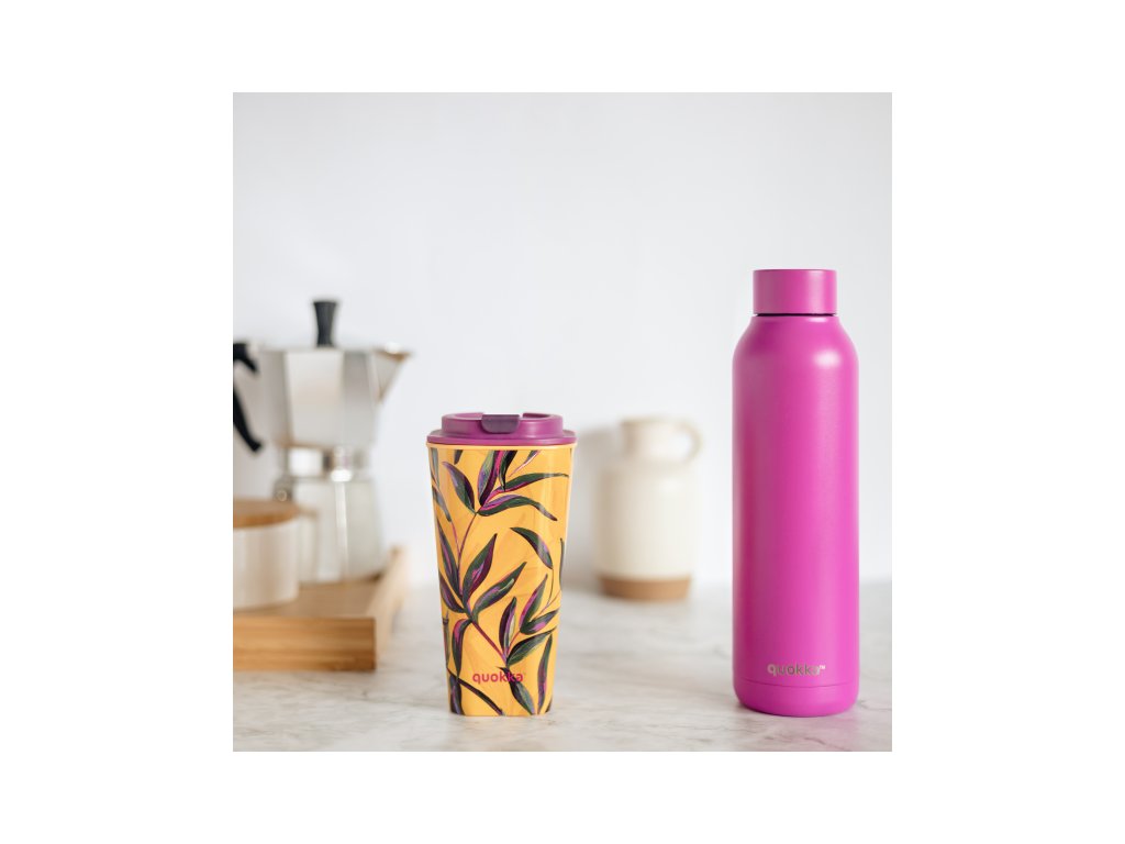 A Quokka Flux dupla falú műanyag utazóbögre megbízhatóan záródó, csavaros fedéllel és felpattintható zárral van ellátva. A széles száj lehetővé teszi a jégkockák behelyezését.