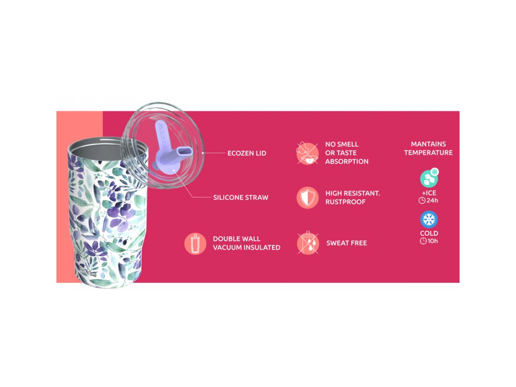 A termobögre akár 10 órán át is hidegen tartja a hideg ital hőmérsékletét, jégkockák hozzáadásával pedig akár 24 órán át is.