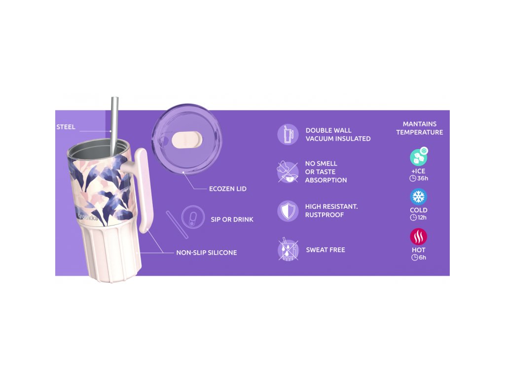 A Quokka Umi termobögre kiváló minőségű, duplafalú acélból készült, és akár 36 órán át hidegen tartja a jeges italokat, 12 órán át a hideg italokat és 6 órán át a meleg italokat. A kivehető rozsdamentes acél szívószállal ellátott termobögre lehetővé teszi a könnyű ivást anélkül, hogy meg kellene dönteni. A minőségi Ecozen műanyagból készült megbízható záróelem megvédi a tartalmat a kiömléstől, és lehetővé teszi a termobögréből szívószál nélkül is az ivást. A széles száj lehetővé teszi a jégkockák behelyezését, és egyben megkönnyíti a bögre tisztítását.