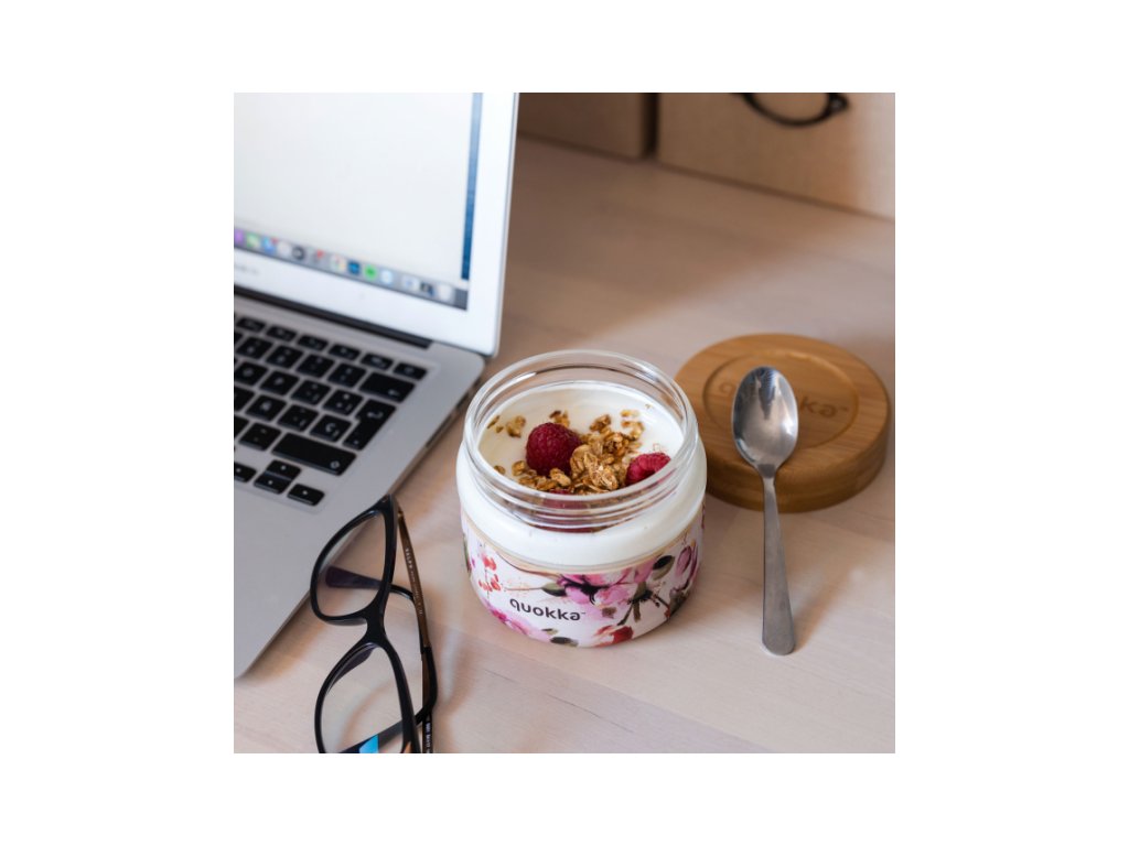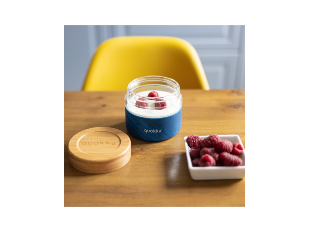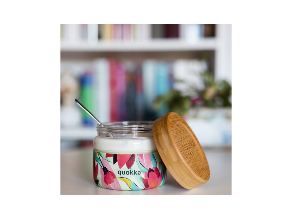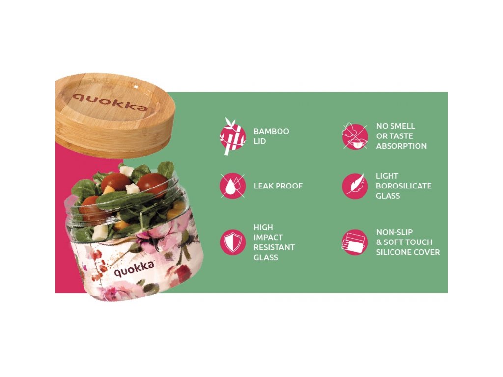 A csavaros fedéllel és csúszásgátló szilikon bevonattal ellátott üvegtartály alkalmas tízórai szállítására iskolába, munkába és kirándulásokra.A megbízható, 100%-ban tömítő csavaros zár megvédi a tartály tartalmát a kiömléstől vagy kiborulástól.