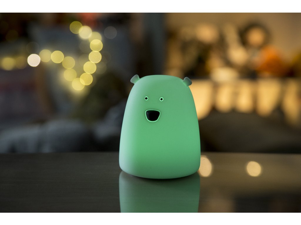Érintésérzékeny gyermeklámpa, Kis Medve, RózsaszínÉdes, érintésvezérelt gyermeklámpaAz érintésérzékeny Kis Medve gyermeklámpa nagyszerű kiegészítője minden gyerekszobának. Különböző világítási lehetőségeket kínál hét különböző színben, beleértve az elalvás előtti könyvolvasáshoz alkalmas fényt és a lágy fényt, amely segít a gyermekeknek elaludni. Egyszerűen érintéssel vezérelhető, hordozható, így a gyerekek bárhová magukkal vihetik, ahol aludni készülnek.Praktikus és hordozható éjszakai fényAz éjszakai lámpa megkönnyíti a szülők számára a gyermek éjszakai gondozását. Ennek köszönhetően gond nélkül felügyelheti, szoptathatja vagy pelenkázhatja anélkül, hogy éles fénnyel felébresztené. A lámpa akár 12 órán át is képes világítani, és kínál automatikus kikapcsolási lehetőséget egy óra elteltével, ami energiát takarít meg.Jellemzők:- puha és tapintásra kellemes BPA-mentes szilikon- érintéssel vezérelhető- 7 színben világít- világítási idő teljesen feltöltött állapotban kb. 12 óra- automatikus kikapcsolás lehetősége 1 óra után- 3x AAA elemmel működik- nem melegszik- könnyen tisztítható