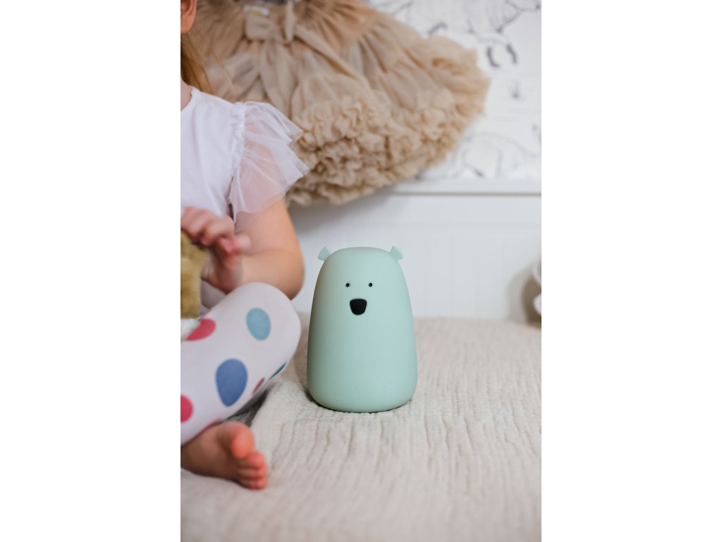 Gyermek érintőlámpa Nagy medve ZöldAranyos gyermeklámpa érintésvezérlésselA Nagy medve gyermek érintőlámpa nagyszerű kiegészítője minden gyerekszobának. Különböző fényerősségeket kínál, beleértve az elalvás előtti könyvolvasáshoz alkalmas fényt és a lágy fényt, amely segít a gyerekeknek elaludni. Egyszerűen érintéssel vezérelhető, hordozható, így a gyerekek bárhová magukkal vihetik, ahol aludni készülnek.Praktikus és hordozható éjszakai fényAz éjszakai lámpa megkönnyíti a szülők számára a gyermek éjszakai gondozását. Ennek köszönhetően gond nélkül felügyelheti, szoptathatja vagy pelenkázhatja anélkül, hogy éles fénnyel felébresztené. Teljes feltöltés után a lámpa akár 12 órán át is világít, és 2 óra elteltével automatikus kikapcsolást kínál, ami energiát takarít meg.Jellemzők:- puha és tapintásra kellemes szilikon BPA nélkül- érintéssel vezérelhető- a fényerősség változtatása- a teljes feltöltés utáni világítási idő kb. 12 óra- automatikus kikapcsolás lehetősége 2 óra után- töltés USB Type-C kábellel (a csomag tartalmazza)- nem melegszik- könnyen tisztítható