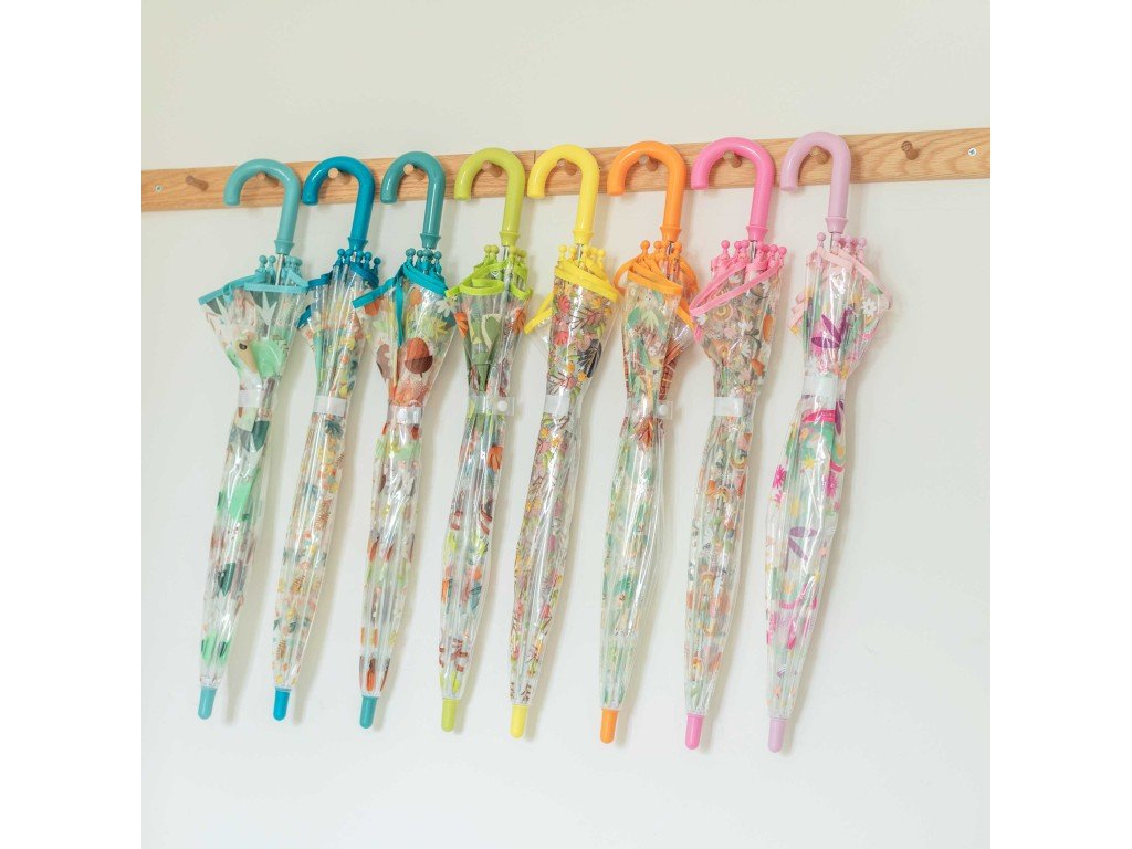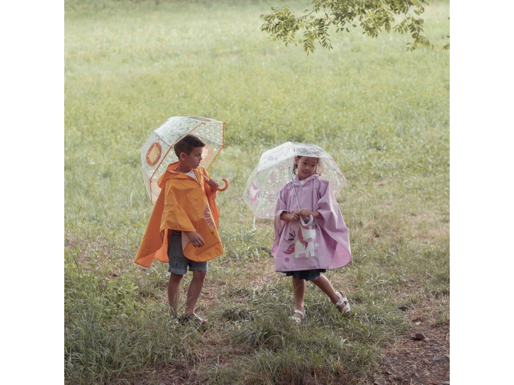 Átlátszó gyermek esernyő a bátor Chompy oroszlán motívumával ideális ahhoz, hogy a borús napokat játékkal teli pillanatokká varázsolja. Tartós anyagokból készült, átlátszó kupolával a jobb láthatóság érdekében. Ez a gyermek esernyő kifejezetten a kis felhasználók számára készült. Kényelmes fogantyúval és barátságos kialakítással az esernyő biztonságos és szórakoztató a használatra.