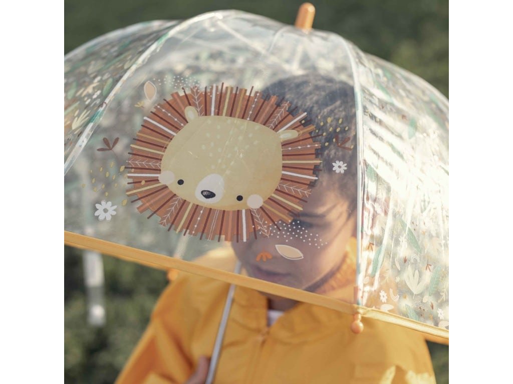 Chompy, a bátor oroszlán mintájú átlátszó esernyő, szórakoztatóvá teszi a felhős napokat, és biztonságos a kisgyermekek számára.
