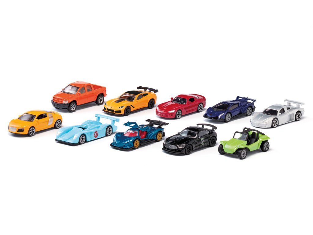 10 db-os sportautó készlet. Méretek: 33x40x21cm. Életkor: 3+