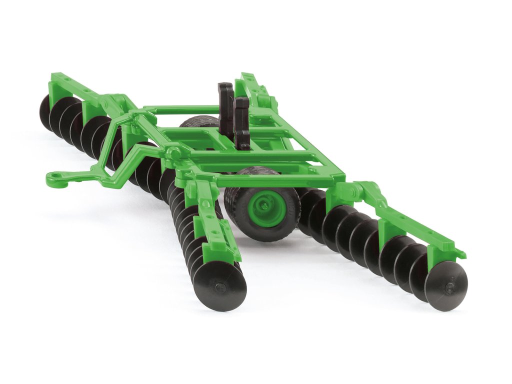 Minden gazdaságban nélkülözhetetlen: igazán jó, nagy teljesítményű és megbízható tárcsás boronák. Az azonnali talajmegmunkálásra használják szántás vagy betakarítás után, hogy megakadályozzák a gyomokat és a kártevőket, valamint hogy ne vesszen el túl sok talajnedvesség. A traktorhoz csatlakozik, és a traktor irányítja. Kompatibilis az összes Siku vonószerkezetével 1:32 méretarányú traktor modellekhez, összeszerelt és azonnal használatra kész. A jármű váza robusztus fémből készült, a felhajtható karok mozgatható műanyag tárcsákkal vannak ellátva. A gumikerekek elegendő tapadást biztosítanak terepre menet közben is. Méret: 166x168x45 mm. Csomagolási méret: 25,5x13x6 cm. 3 éves kortól