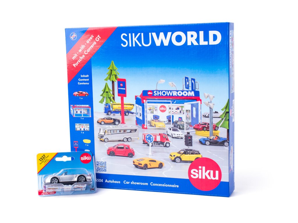 A színes hátsó fallal rendelkező autószalon három autó parkolására alkalmas helyet kínál + egy Porsche 911 Turbo Kabrió (1337) játékautó INGYENES ajándékba. Hozzon létre minden napra új játékszkriptet új és használt autók számára! A széles, üvegajtók könnyű be- és kijárást tesznek lehetővé. A parkoló Porsche Carrera GT fantasztikusan mutat az autószalon forgó pódiumán. A standard Siku játéktábla lehetővé teszi a készlet egyszerű csatlakoztatását a SIKUWORLD-höz. A járművek ezután könnyen áthaladhatnak az egész Siku világon a kívánt helyre. Az autó a csomag része. Játéktér mérete: 270 x 350 mm. Csomag mérete: 28 x 27,5 x 8,5 cm. Életkor: 3+