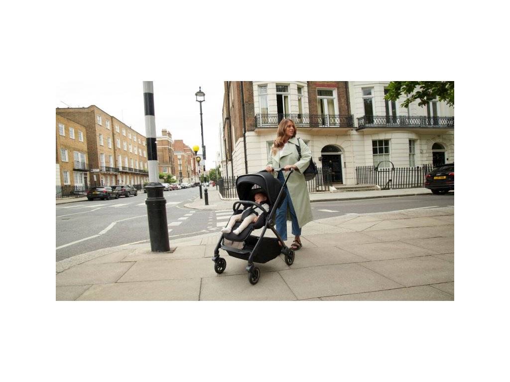 A sima utazást a minőségi rugózás garantálja mind a négy keréken, valamint a szúrásálló gumik. A forgatható első kerekek lehetővé teszik a forgás rögzítését. A robusztus lábfék könnyen kezelhető a cipő kopásának kockázata nélkül. A teleszkópos fogantyú a szülő magasságához igazítható beállítást kínál.