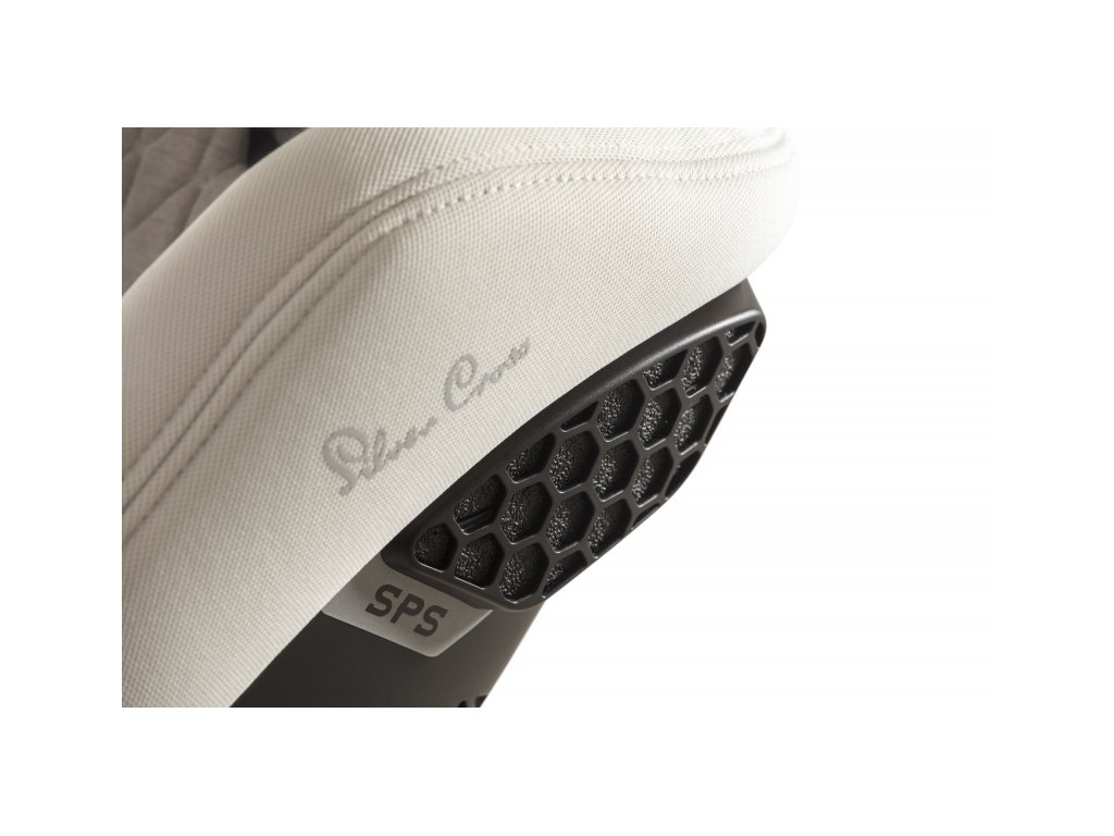 Az autósülés az Isofix rögzítők segítségével rögzíthető az autóba. A támasztóláb ütközés esetén segít az autósülést a helyén tartani. Az oldalsó védelem rendszere az SPS védi a gyermek fejét és oldalát oldalirányú ütközés esetén.