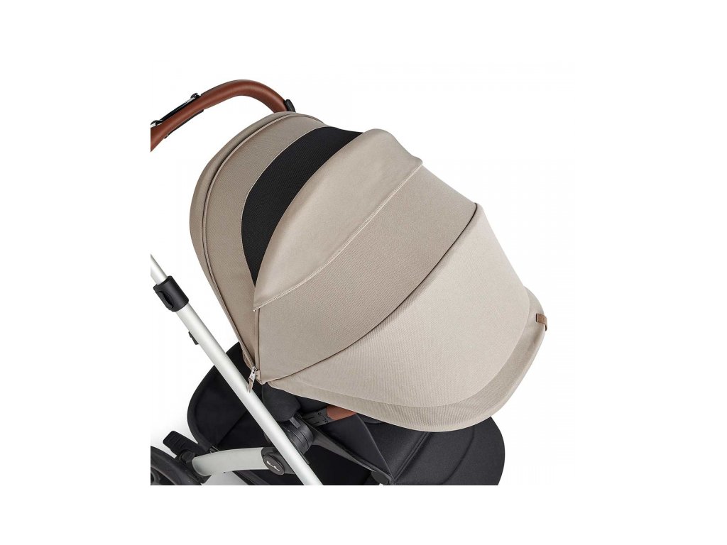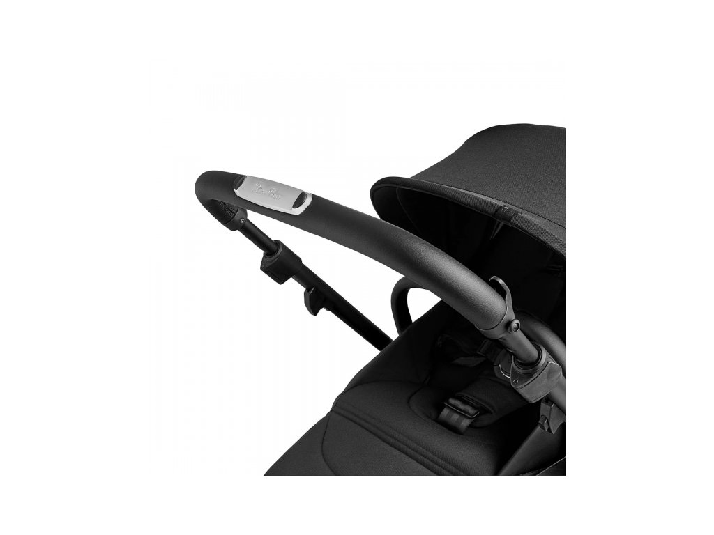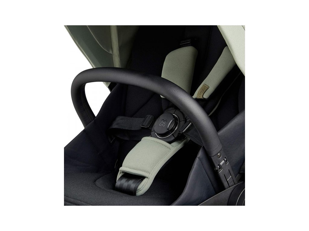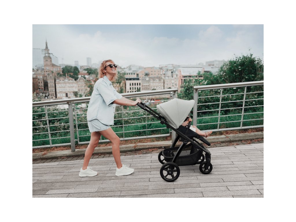 A sima utazást a mind a négy kerék minőségi felfüggesztése és a nagy szúrásálló gumik biztosítják. A forgatható első kerekek lehetővé teszik a forgás rögzítését. A robusztus lábfék könnyen kezelhető a cipő kopásának kockázata nélkül. A teleszkópos fogantyú a szülő magasságához igazítható beállítást kínál. A tágas kosár elegendő helyet kínál minden szükséges dolog tárolására a babával való séták során.
