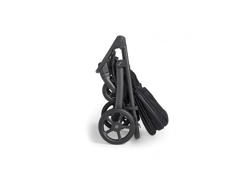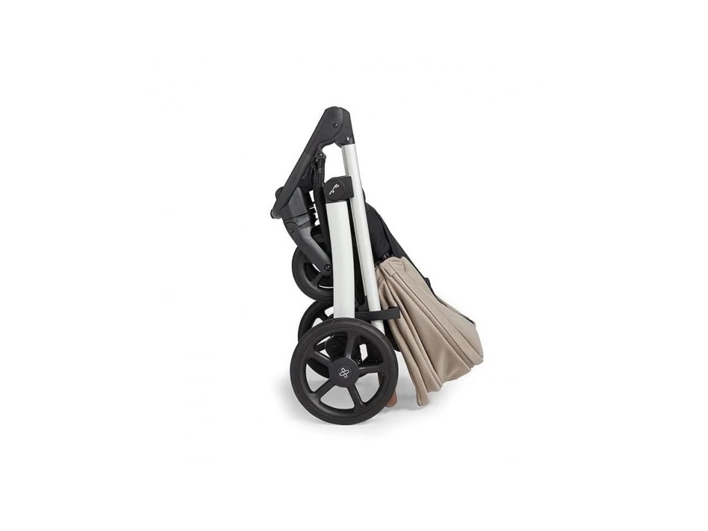 A babakocsit az üléssel együtt néhány másodperc alatt egy kézzel összecsukhatja. Összecsukva önállóan áll a kerekeken anélkül, hogy a műbőrrel bevont fogantyú a padlóhoz érne.
