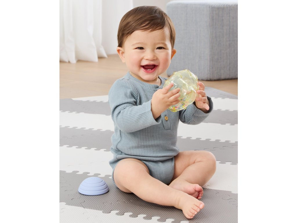 - Az első üzemmódban csörgő és rágóka használható, amelyek könnyen foghatók és kellemes textúrájúak.