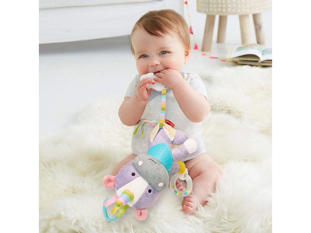 Gyönyörű játék praktikus babakocsi-rögzítővel, susogó fülekkel, a zsebében vagy a mancsában rágóka vagy csörgő található. A nyakában kendő/rágóka van, amely levehető és külön használható. Az egész játék csodálatos hangot ad ki, mint egy csörgő, amikor megrázzák. 0% BPA-t, 0% PVC-t, ftalátmenteset tartalmaz.