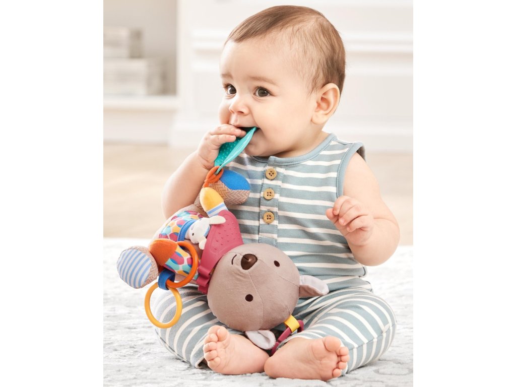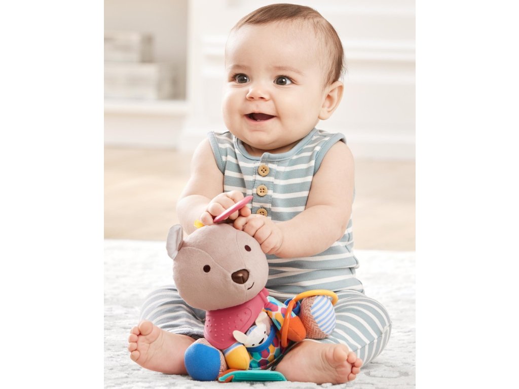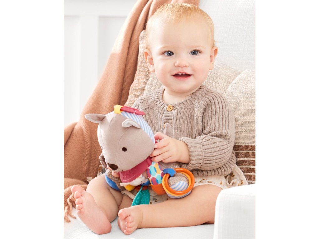 Ez az egyben puha játék és rágóka ideális a többféle érzékszervvel való játékhoz. Csörgőket, susogó hangokat és más elemeket tartalmaz, amelyeket a gyermek felfedezhet. Válaszd ki a kedvenc állatfigurát a kicsinek, és foglalkozz vele, szórakoztasd – otthon vagy útközben.