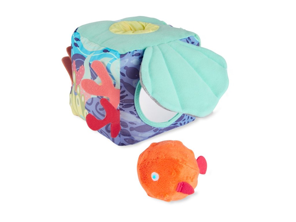 Merülj el a végtelen szórakozásban! Tenger ihlette puha tevékenységkockánk, tele különféle puha textúrákkal, susogó hangokkal és más felfedeznivalókkal, ösztönzi a multiszenzoros felfedezést játék közben. Tartalmaz egy hal csörgőt, egy ráncolt héjat rejtett babatükörrel, egy hal rágókát és sok más óceáni kincset, amelyeket felfedezhetsz.