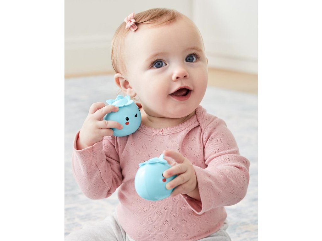 3 darab csörgő készlet aranyos gyümölcsbarátok formájában – eper és áfonya. A csörgők könnyen megfoghatók a kis kezekkel, és rázáskor különféle hangokat adnak ki, amelyeket a gyerekek imádni fognak.