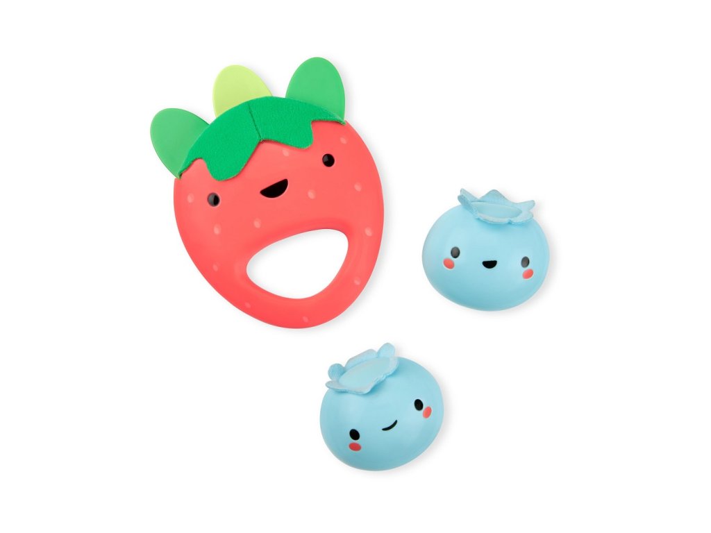 - a készlet 3 darab csörgőt tartalmaz eper és 2 darab áfonya formájában