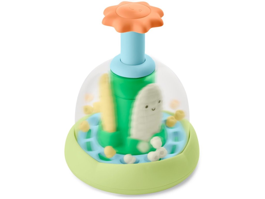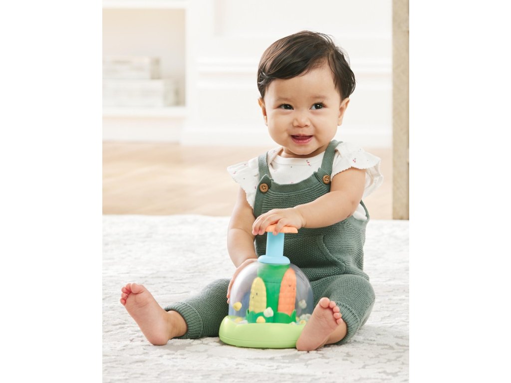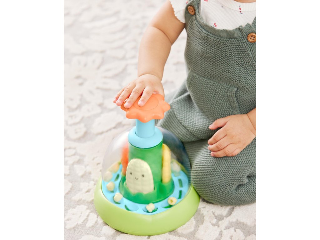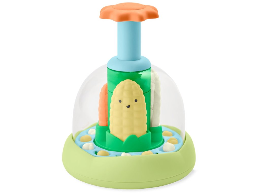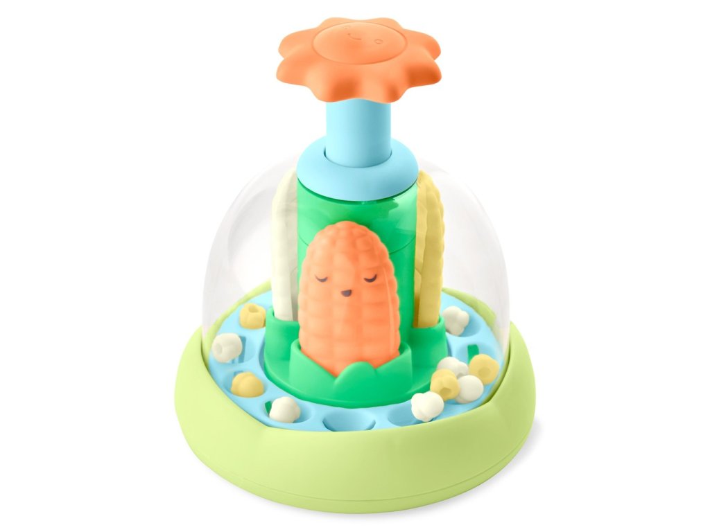 Mi pattog? Érzékszervi kukoricás szórakozás a babának! Frissítő változás a klasszikus babajátékokhoz, csak nyomja meg a barátságos napocskát a tetején, és nézze, ahogy a kukorica forog, ringatózik és pattog. A baba imádni fogja az ok-okozati összefüggések tanulását, miközben a kukoricacsövek fel-alá ringatóznak, a popcorn pedig ugrál.
