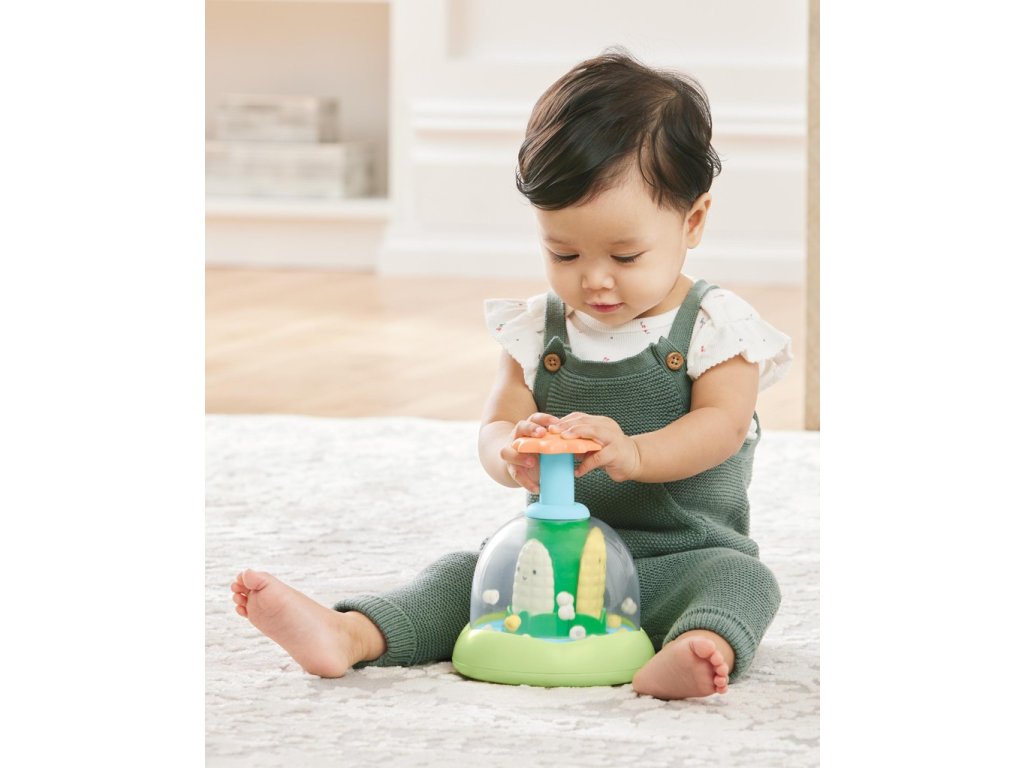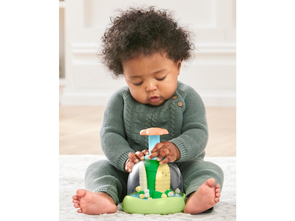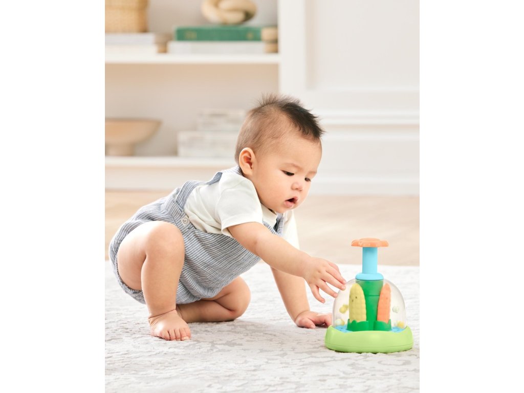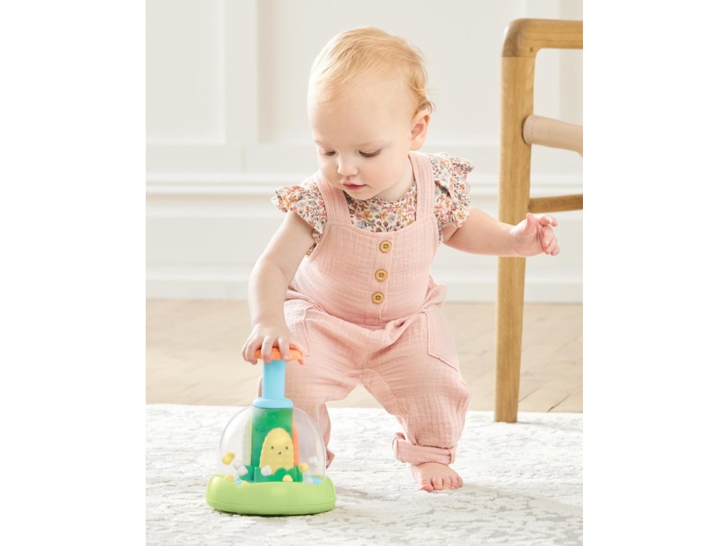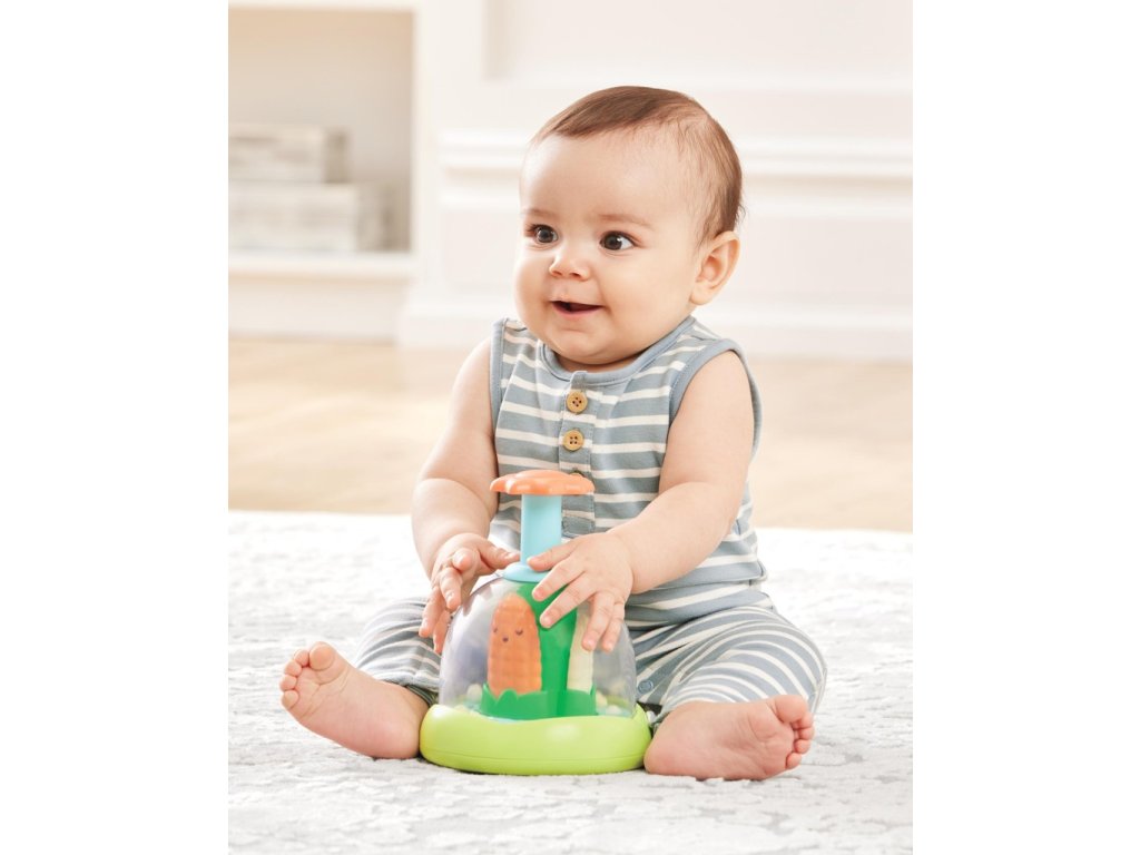 Mi pattog? Érzékszervi kukoricás szórakozás a babának! Frissítő változás a klasszikus babajátékokhoz, csak nyomja meg a barátságos napocskát a tetején, és nézze, ahogy a kukorica forog, ringatózik és pattog. A baba imádni fogja az ok-okozati összefüggések tanulását, miközben a kukoricacsövek fel-alá ringatóznak, a popcorn pedig ugrál.