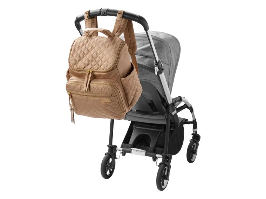A hátizsákban minden kéznél marad a rugalmas belső zsebeknek és a szigetelt oldalsó palacktartó zsebeknek köszönhetően. A belső pelenkázó alátét zsebe utazáskor laptoprekeszként is használható.