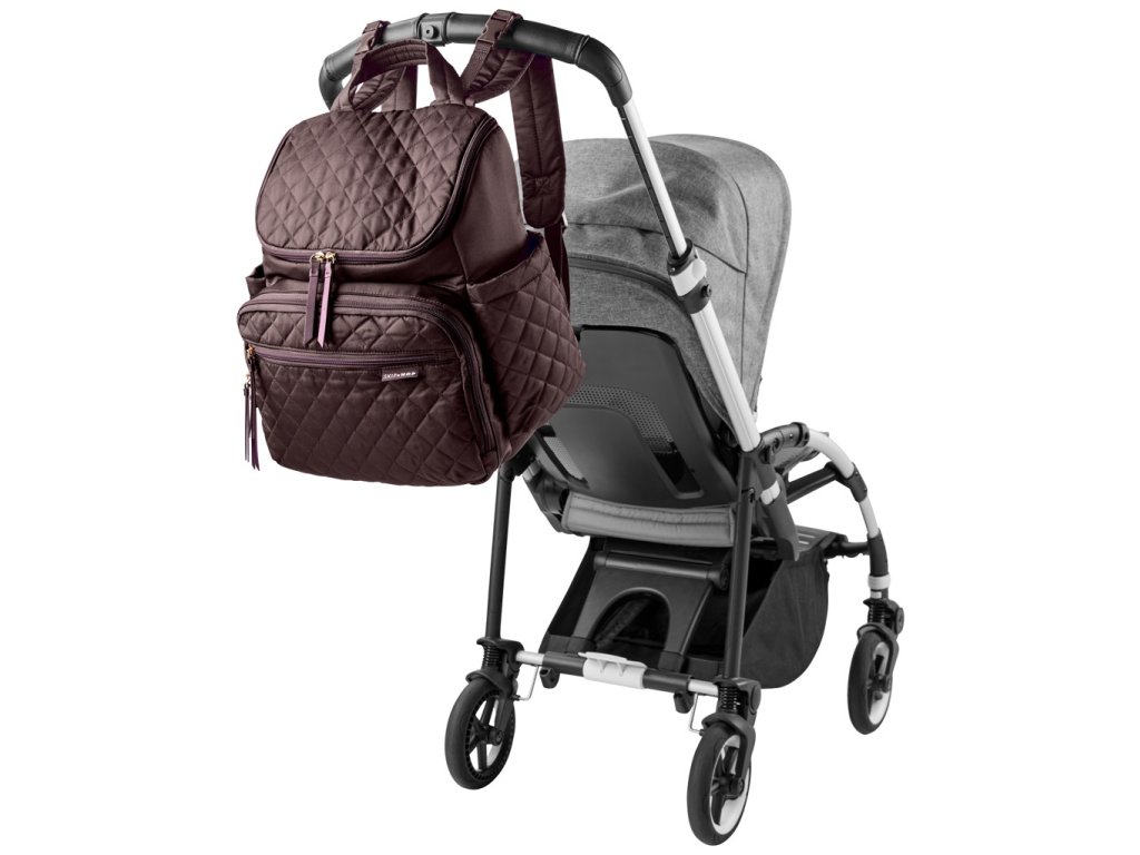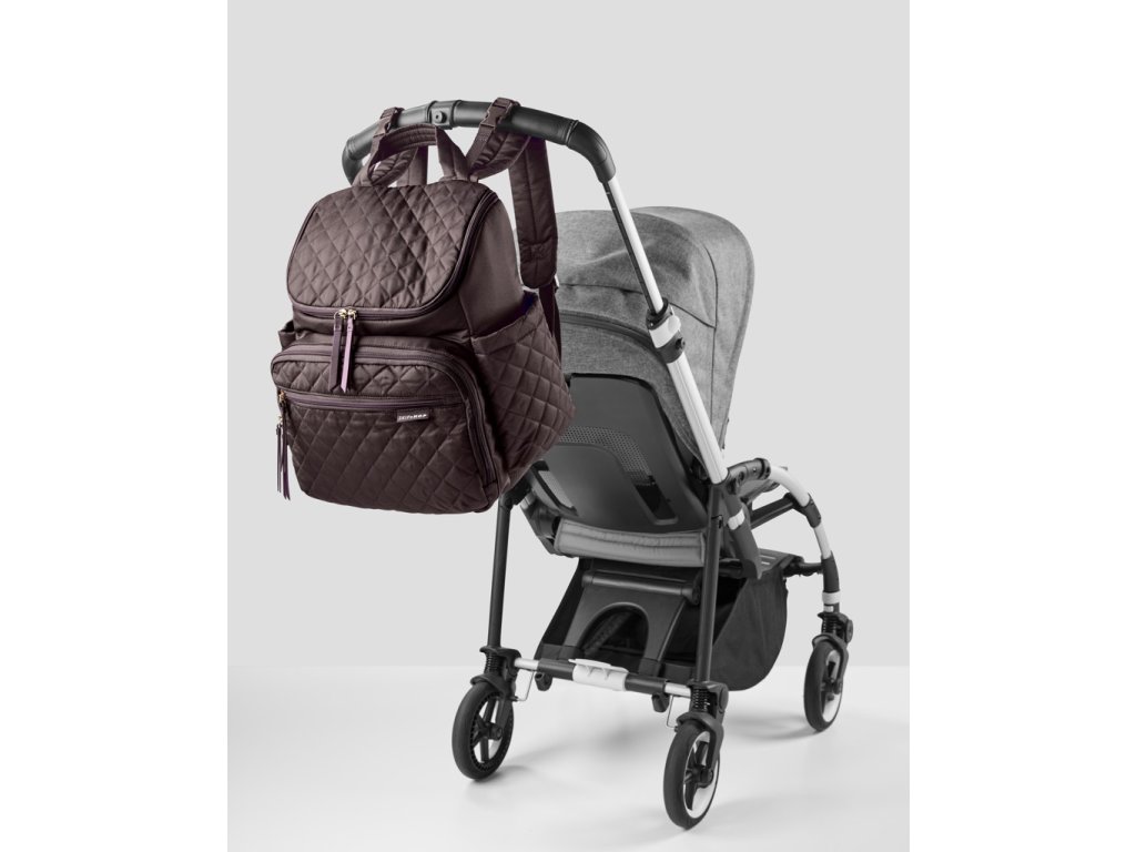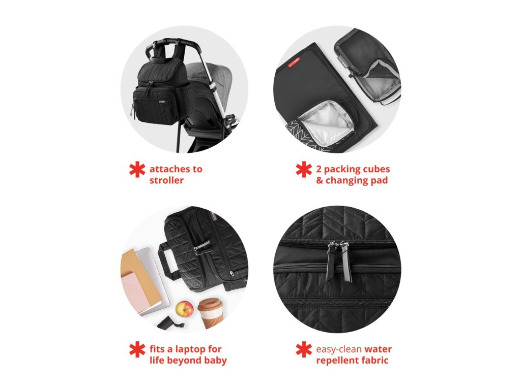 A hátizsákban minden kéznél marad a rugalmas belső zsebeknek és a szigetelt oldalsó palacktartó zsebeknek köszönhetően. A belső pelenkázó alátét zsebe utazáskor laptoprekeszként is használható.