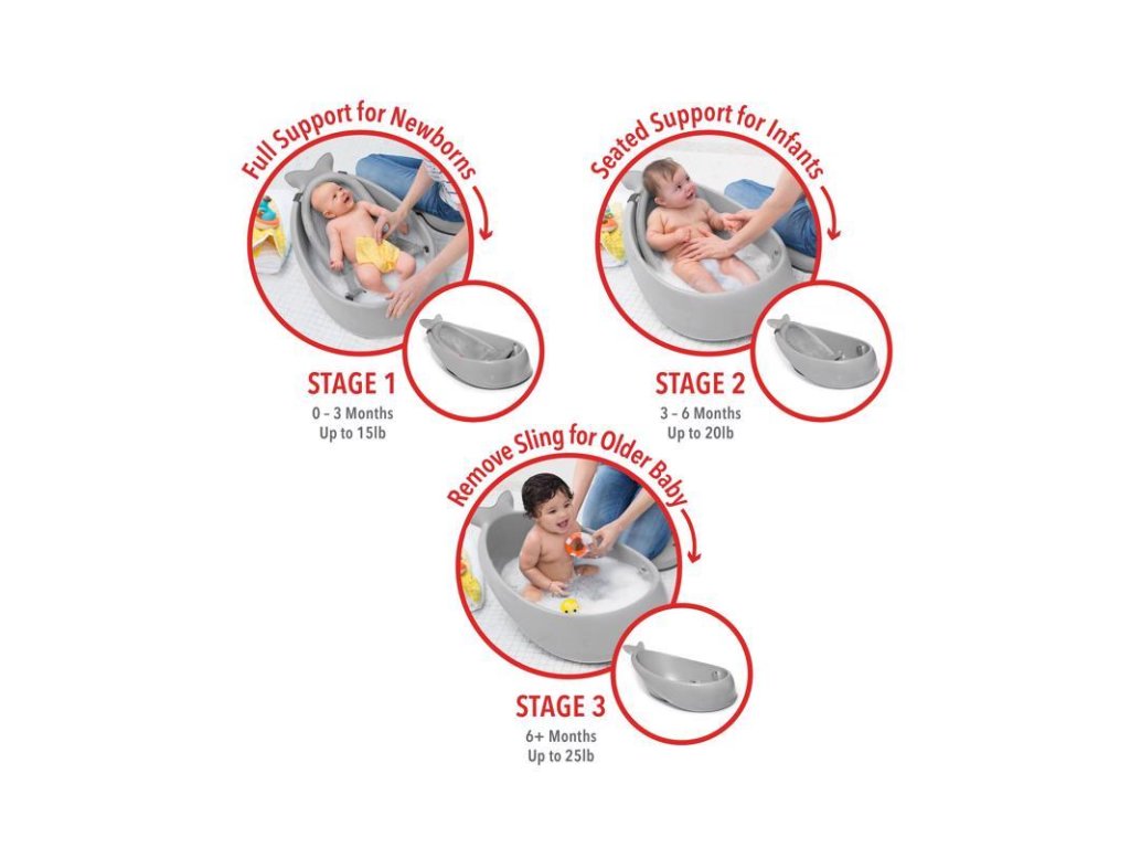 SKIP HOP Fürdetőkád ergonomikus betéttel Moby 3 fázisú szürke