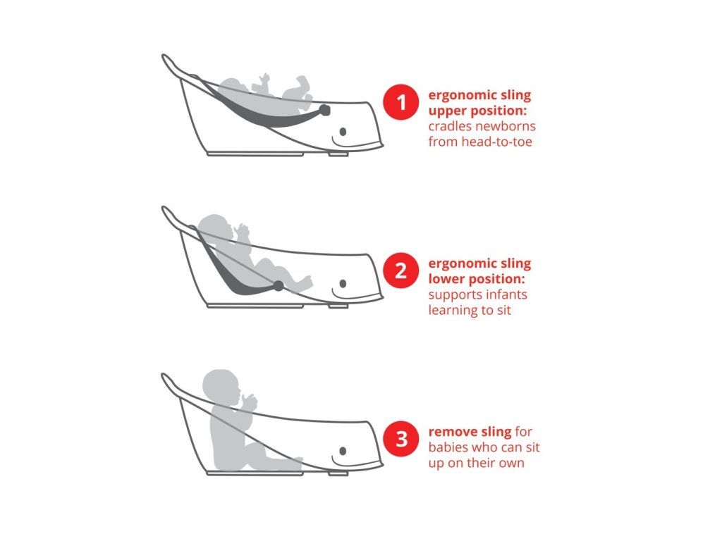A Moby kád lesz az egyetlen kád, amire szükséged lesz! A három pozícióba állításnak köszönhetően együtt nő a gyermekeiddel. A betét két ergonomikus pozícióba rögzíthető: magasabb a teljes felületű alátámasztáshoz, és alacsonyabb az ülés közbeni megtámasztáshoz. A kétrétegű háló és a szélső kialakítás biztonságosan és kényelmesen tartja a babát. Amint a baba megtanul ülni, a heveder eltávolítható, és a fürdés szórakoztatóvá válhat egy tágas, kényelmes kádban, kellemetlen kiemelkedések nélkül.