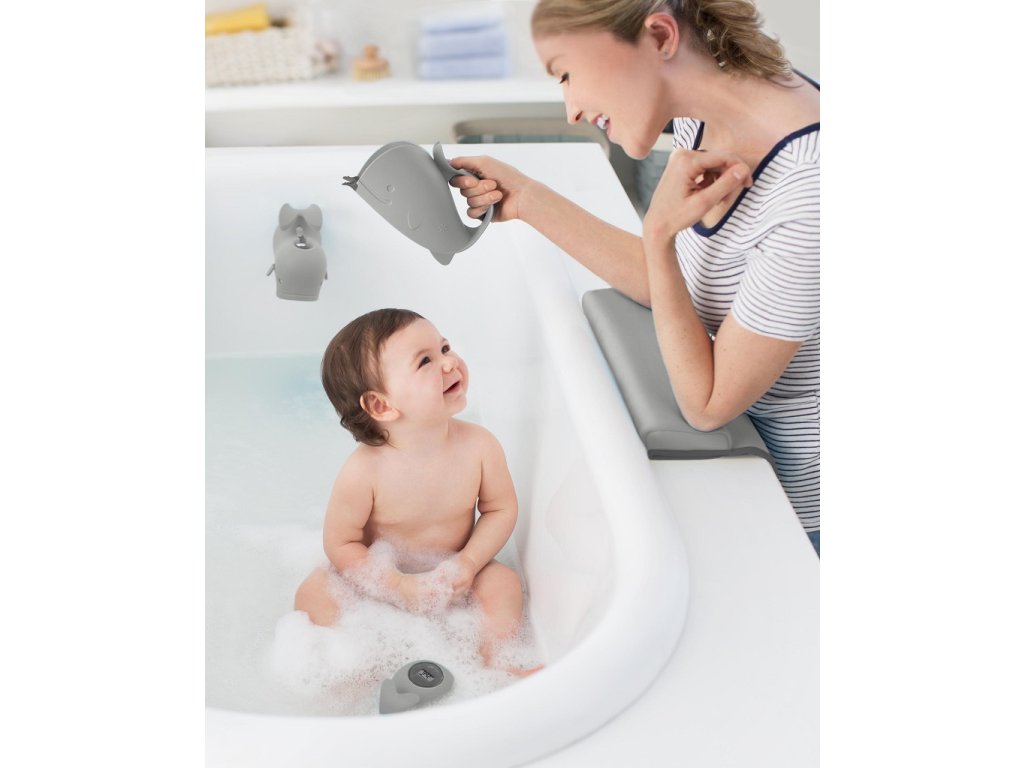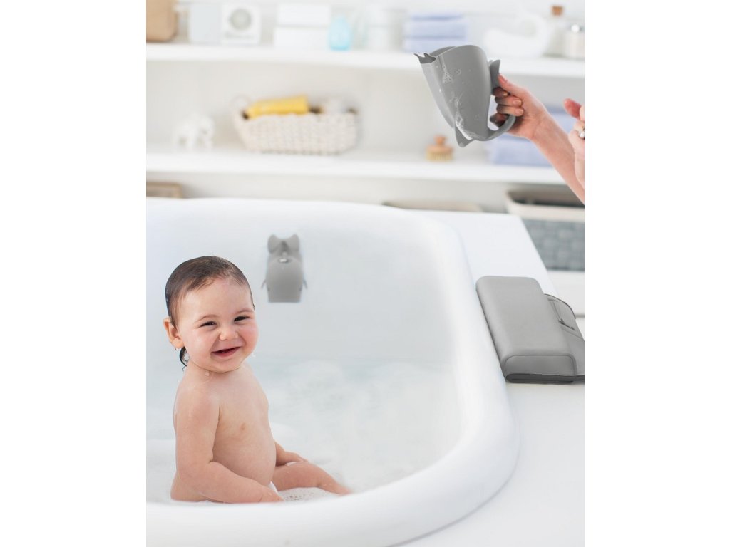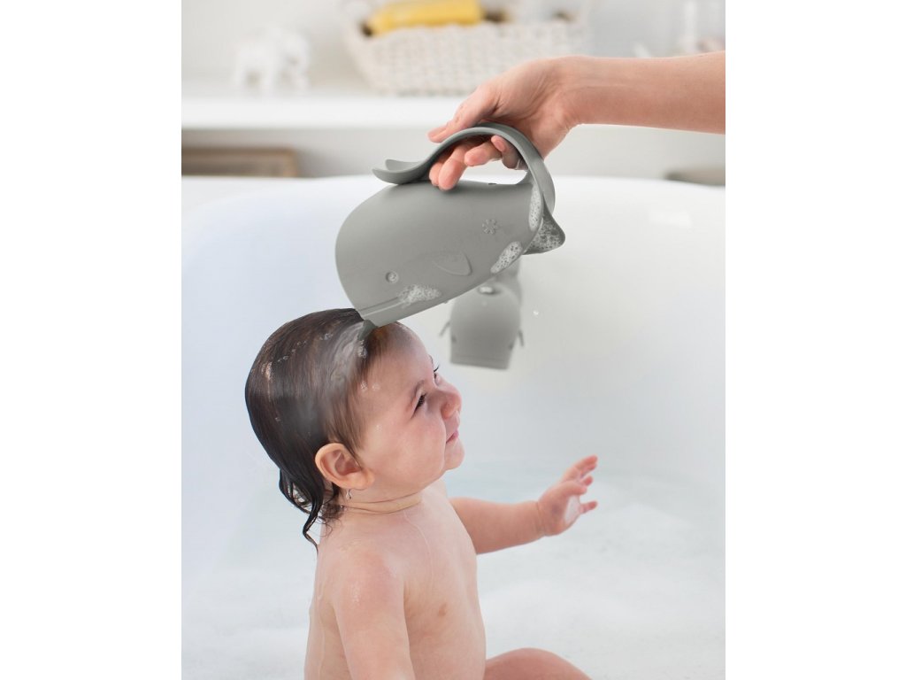 A Moby pohár innovációt hoz a leöblítésben. A belső rekeszeknek köszönhetően a vízáramlás egyenletes, ami gyors öblítést biztosít. A puha gumi természetesen követi a homlok formáját, megakadályozva, hogy víz kerüljön a szembe. A könnyű fogantyú lehetővé teszi, hogy a poharat egyik kezében tartsa, miközben a másikkal a babát tartja.