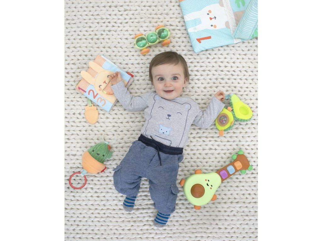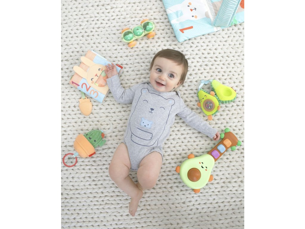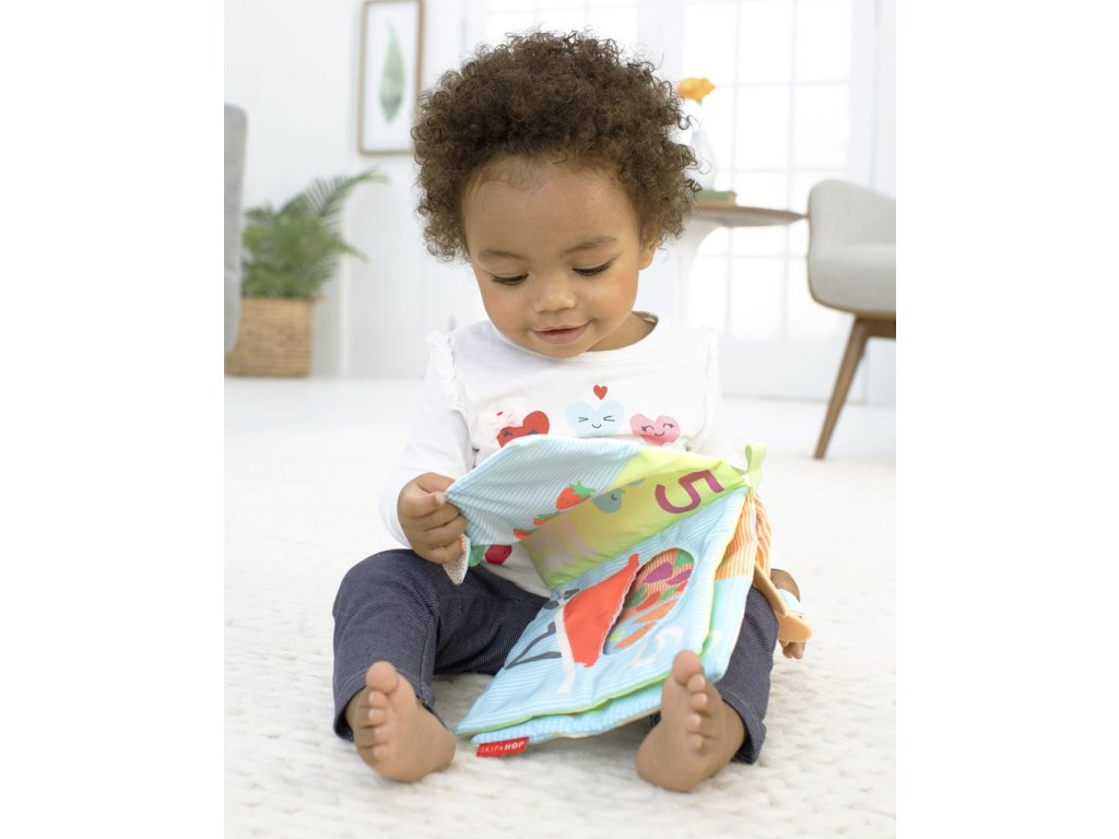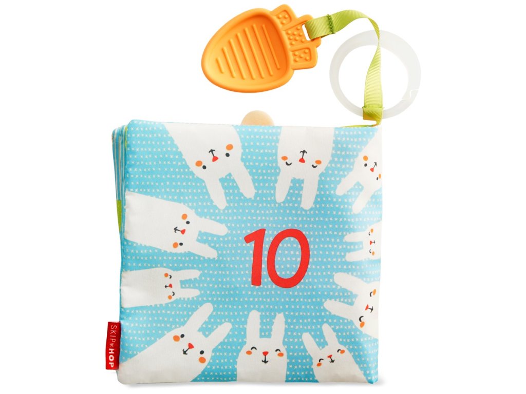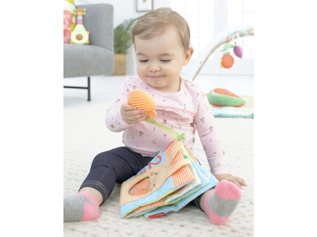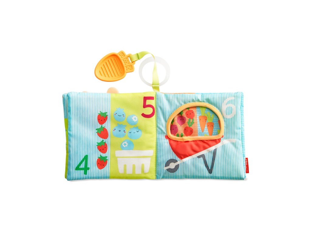Puha textil interaktív könyv aranyos képekkel és különféle tevékenységekkel. Különböző textúrák, susogó hang, színes számok, állatok, kerti motívumok, rágóka vagy tükör ösztönzik a gyermeket a felfedezésre, a kísérletezésre és a finommotorika gyakorlására. A répát behelyezheti és kiveheti a nyílásból, és bújócskát játszhat vele. A gyermek játék közben fejleszti érzékeit és képzelőerejét. A könyv ideális a szülőkkel való közös játékra, ahol a játék során segíti a gyermekek szókincsének fejlesztését.