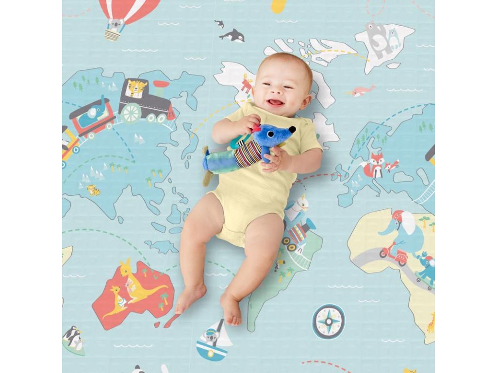 A Kicsi Utazó kétoldalas játszószőnyeggel biztonságos helyet teremthet gyermekei számára otthona bármely részén, legyen az a gyerekszobában vagy a nappaliban. A szőnyeg kétoldalassága megduplázza a stílusos felhasználás lehetőségeit élénk gyermeki színekben és mintákban, de visszafogottabb dizájnban is. A teljesen polimermentes szőnyeg könnyen tisztán tartható, és egyszerűen feltekerhető, így könnyen mozgatható vagy tárolható. A szőnyeg puhasága szigetel és elnyeli az ütéseket, így biztosítva gyermeke számára a maximális kényelmet és biztonságot játék közben.